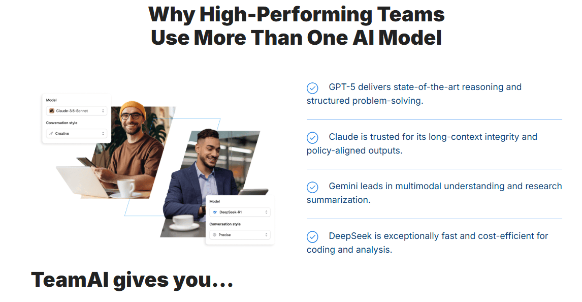 Why it matters: By unifying GPT‑5, Claude, Gemini, and others in one workspace, TeamAI makes multi‑model collaboration practical. Builders gain stronger validation, safer outputs, and a clearer path to trustworthy AI systems.