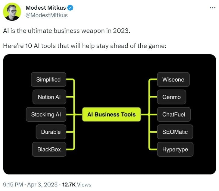 Here're 10 AI tools that will help stay ahead of the game:” - check the tweet here ✨