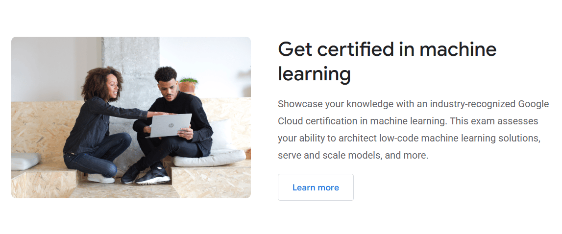 Available through Grow with Google.Explore Vertex AI, TensorFlow, and AI-powered automation with learning paths for beginners to advanced developers and data scientists.