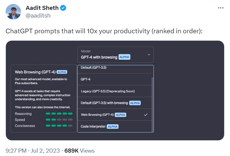 “ChatGPT prompts that will 10x your productivity (ranked in order):” Check here.