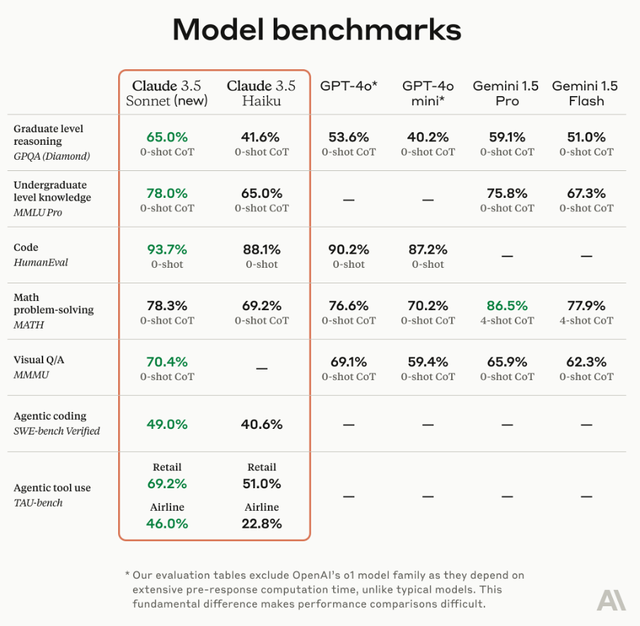 The update also includes Claude 3.5 Sonnet, which excels in programming, scoring 49% on the SWE Bench Verified Test and showing enhanced abilities in tasks like retail and aviation through the TAU Bench. Claude 3.5's new "computer use" feature enables it to interact with digital interfaces, achieving notable results on the OSWorld benchmark, though scrolling remains challenging. Anthropic's Claude 3.5 excels in coding, digital assistance, and real-time interaction, providing fast, intelligent responses for precise and efficient tasks.