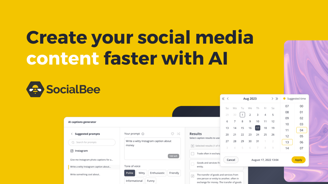 Say goodbye to writer’s block! SocialBee’s AI Post Generator for social media makes content creation easy. Just type a few ideas, get inspired by their 1K ready-to-use prompts, and let AI handle the rest. Pair it with their scheduler, analytics, and social inbox for total social media success.