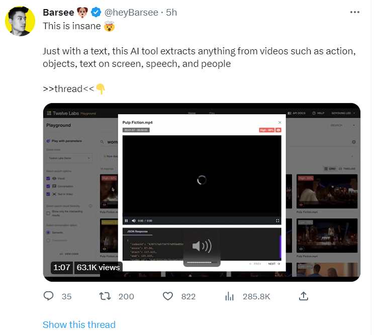 Just with a text, this AI tool extracts anything from videos such as action, objects, text on screen, speech, and people” Check here 🔥