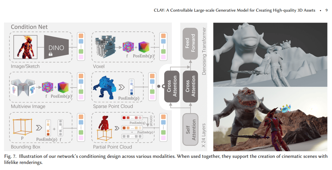 CLAY can generate a wide range of objects, from everyday items to complex fantasy creatures. It also allows additional inputs beyond text and images, such as rough shapes (voxel structures, point clouds) or bounding boxes.