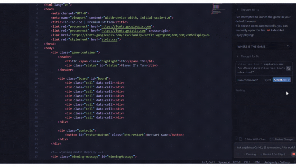 This TIC TAC TOE game created using Antigravity/AI Entreprenuers