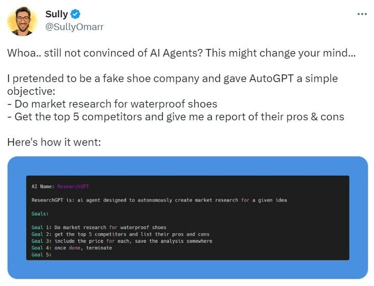I pretended to be a fake shoe company and gave AutoGPT a simple objective: