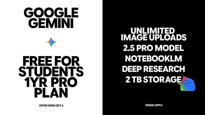 Big win for students in the US, Brazil, Korea, Japan, and Indonesia: Google’s giving away Gemini 2.5 Pro, Deep Research tools, 2TB storage, and more absolutely free for a year. Whether you're grinding essays or building your next AI startup, this is your all-access pass to smarter productivity.