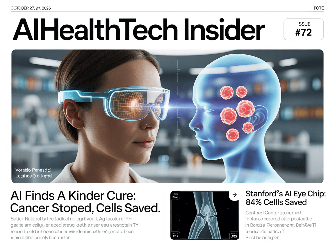 This week’s AIHealthTech Insider explores how a new cancer therapy halts tumor growth without harming healthy cells, how Stanford’s wireless implant helps 84% of blind patients read again, and how Google Cloud and Anthropic are powering the next wave of precision medicine.