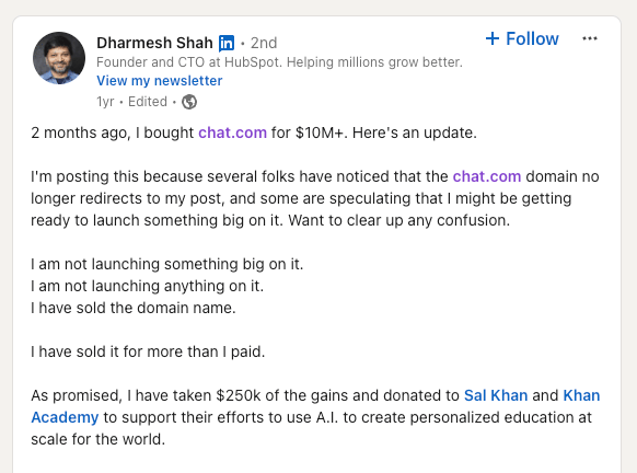 OpenAI’s recent acquisition of the premium domain Chat.com, formerly owned by HubSpot co-founder Dharmesh Shah, highlights the strategic push for brand prominence in the AI landscape. This high-value purchase, reportedly over $15 million, now redirects users to OpenAI’s ChatGPT, making it easier than ever for users to access their AI-powered chatbot.