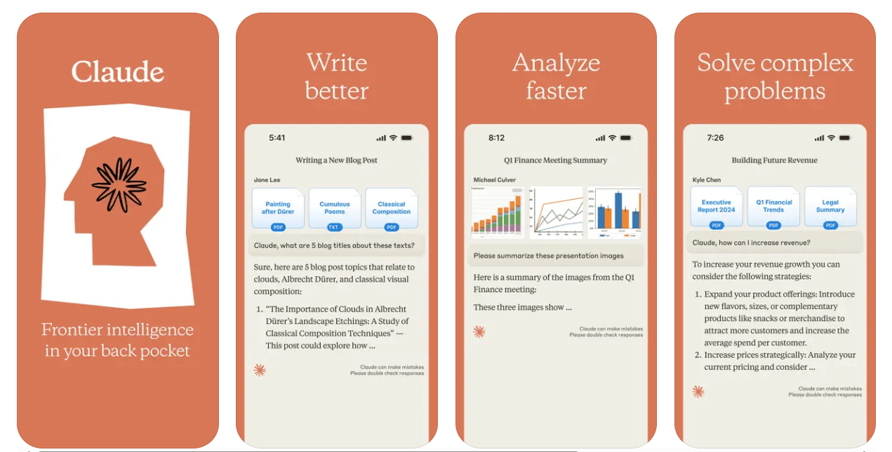Claude iOS app: Access Claude, brainstorm ideas, and analyze images on the go.