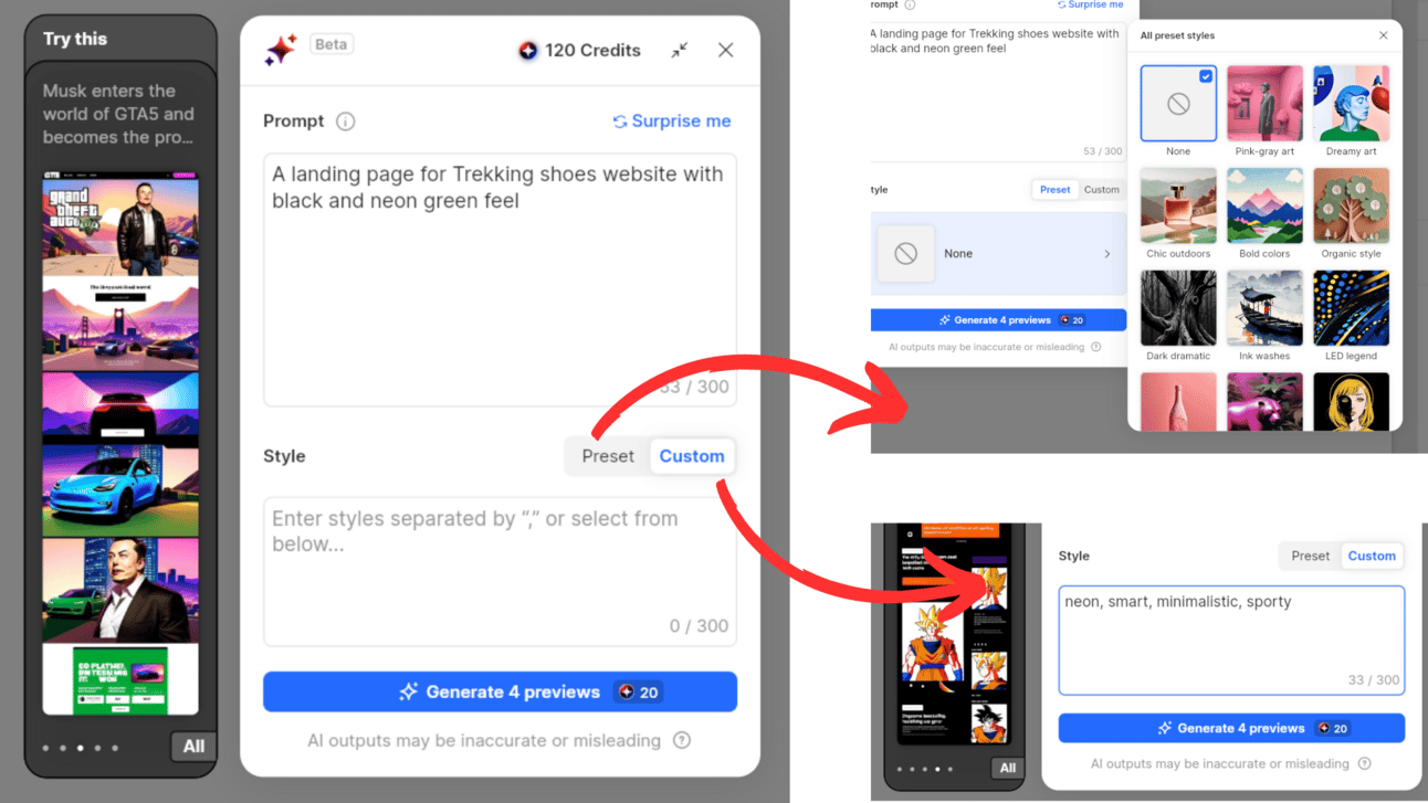 Step 3: Once done, click on “Generate 4 previews” and it will generate 4 options for you, choose one and you’re done!