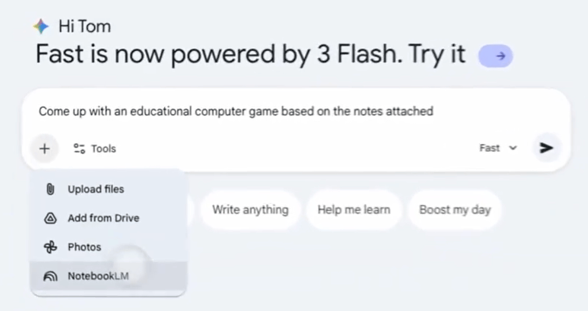 Google’s Gemini app now supports direct Notebook uploads, letting users merge projects, generate images or apps from existing work, and extend notebooks with live web research. The update positions Gemini as a flexible creation hub for building, remixing, and scaling ideas in one place.