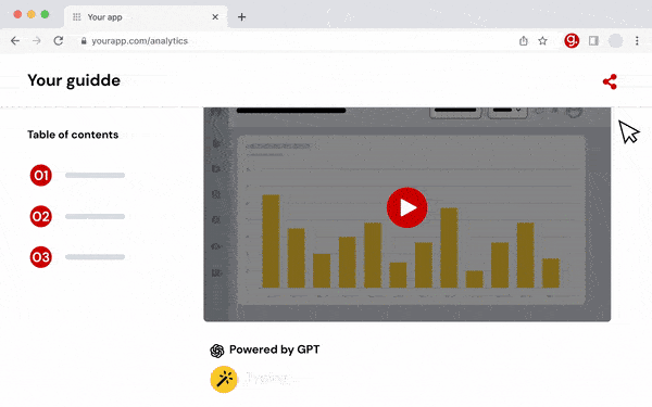 To avoid those distractions, you need a how-to guide that explains things visually — which means you need guidde. It's a GPT-powered extension that turns screen recordings into engaging video explainers, up to 11x faster than making a video from scratch.