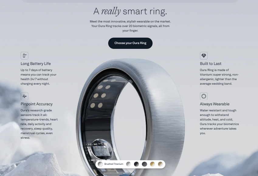 Holistic Health Tracking: Track sleep, activity, heart rate, temperature, and even recovery metrics. The Oura Ring offers a complete picture of your health.
