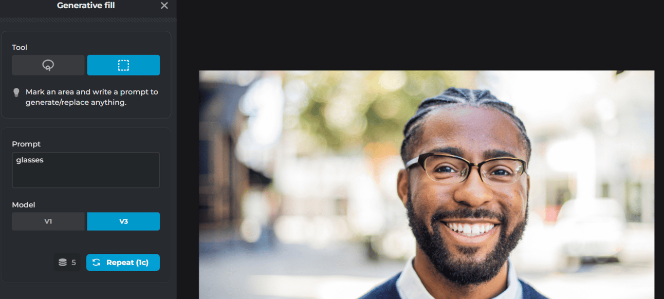 It also has a Generative Fill option, we gave him glasses!
