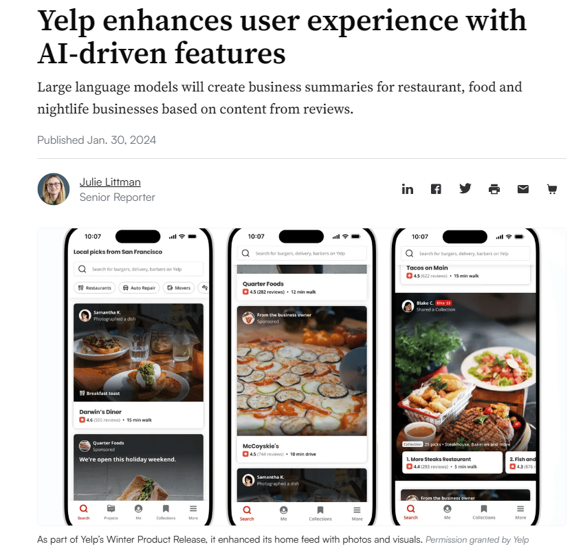 Yelp uses AI algorithms to improve user experience.
