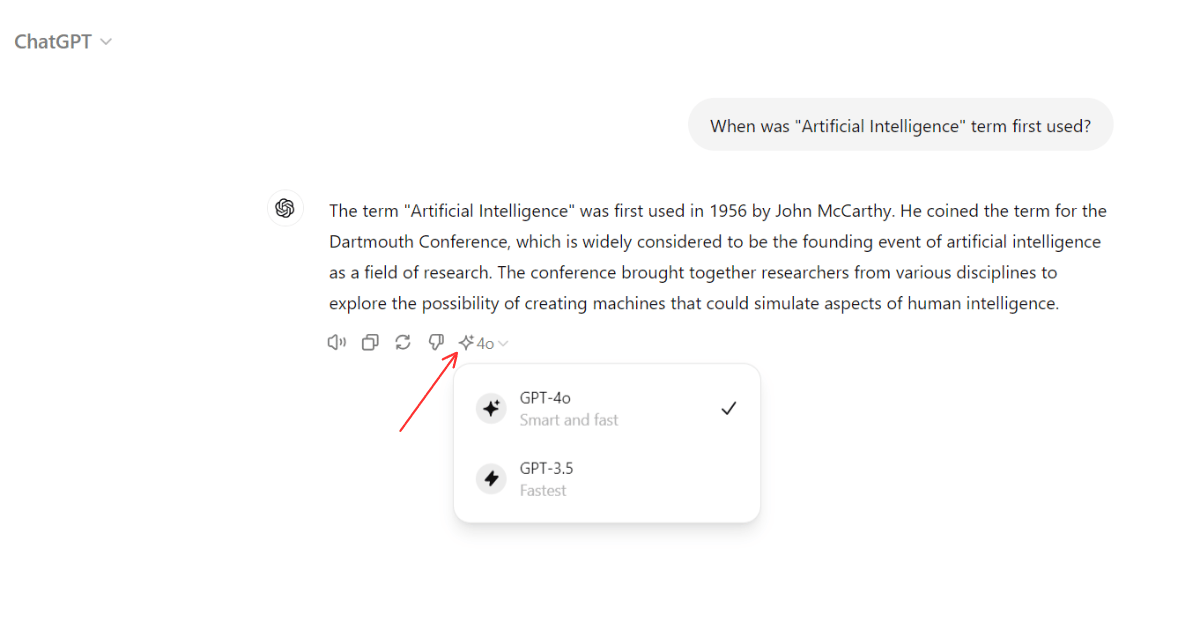 From the friendly dropdown menu, select "ChatGPT 4o" - your key to AI conversations at your fingertips.