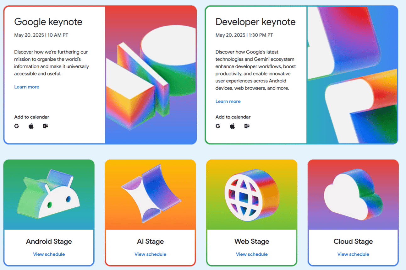 Tune in to Google I/O 2025, May 20-21, for live keynotes and sessions on AI, Android, Web, and Cloud innovations. Learn how Google’s mission to organize the world’s information drives tools like Gemini and NotebookLM’s mobile app, empowering entrepreneurs to build smarter solutions. Register now to unlock insights and fuel your next big idea. Explore sessions.