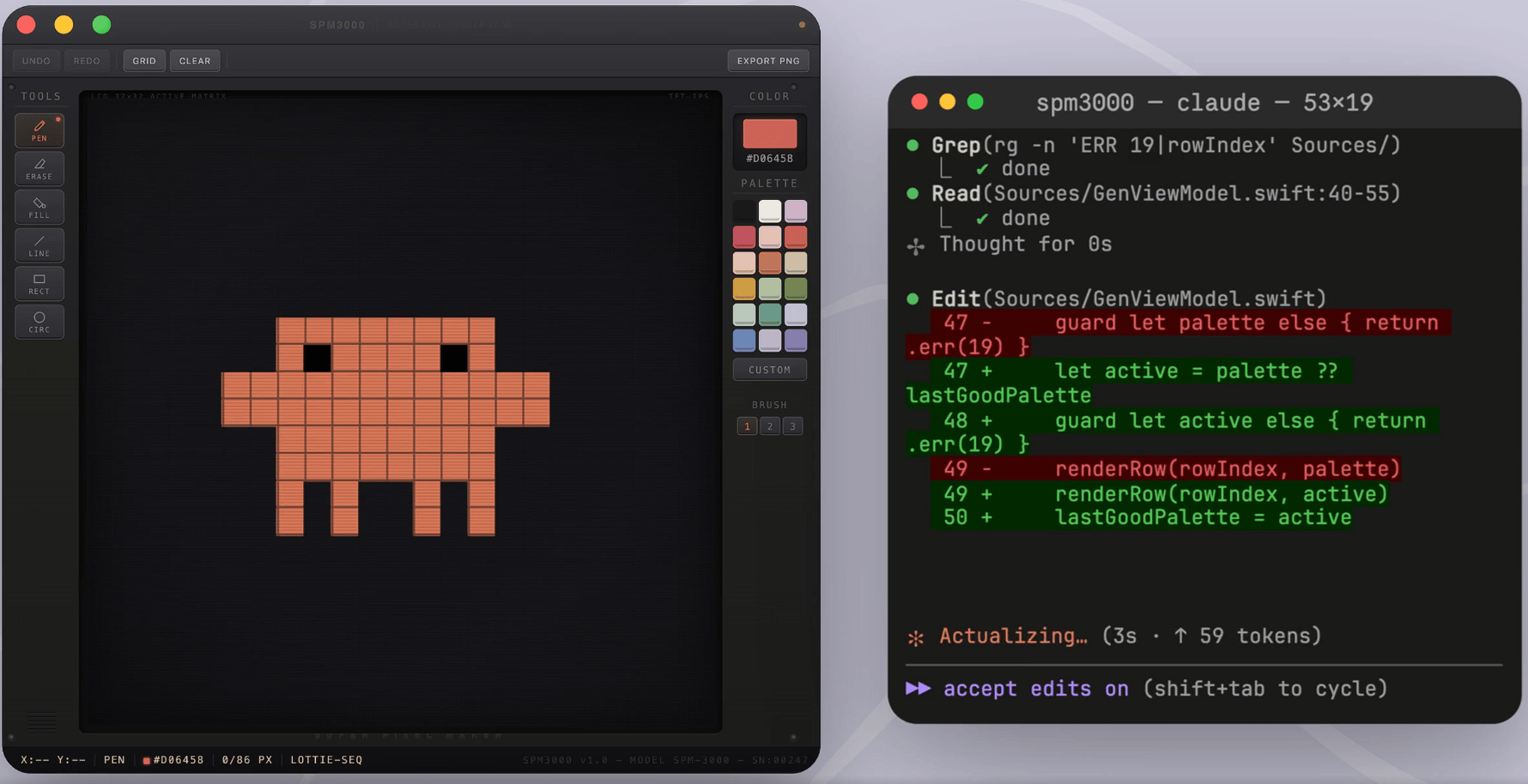 Write code, compile it, launch the app, click through it, find the bug, fix it, and verify the fix — all in one prompt.