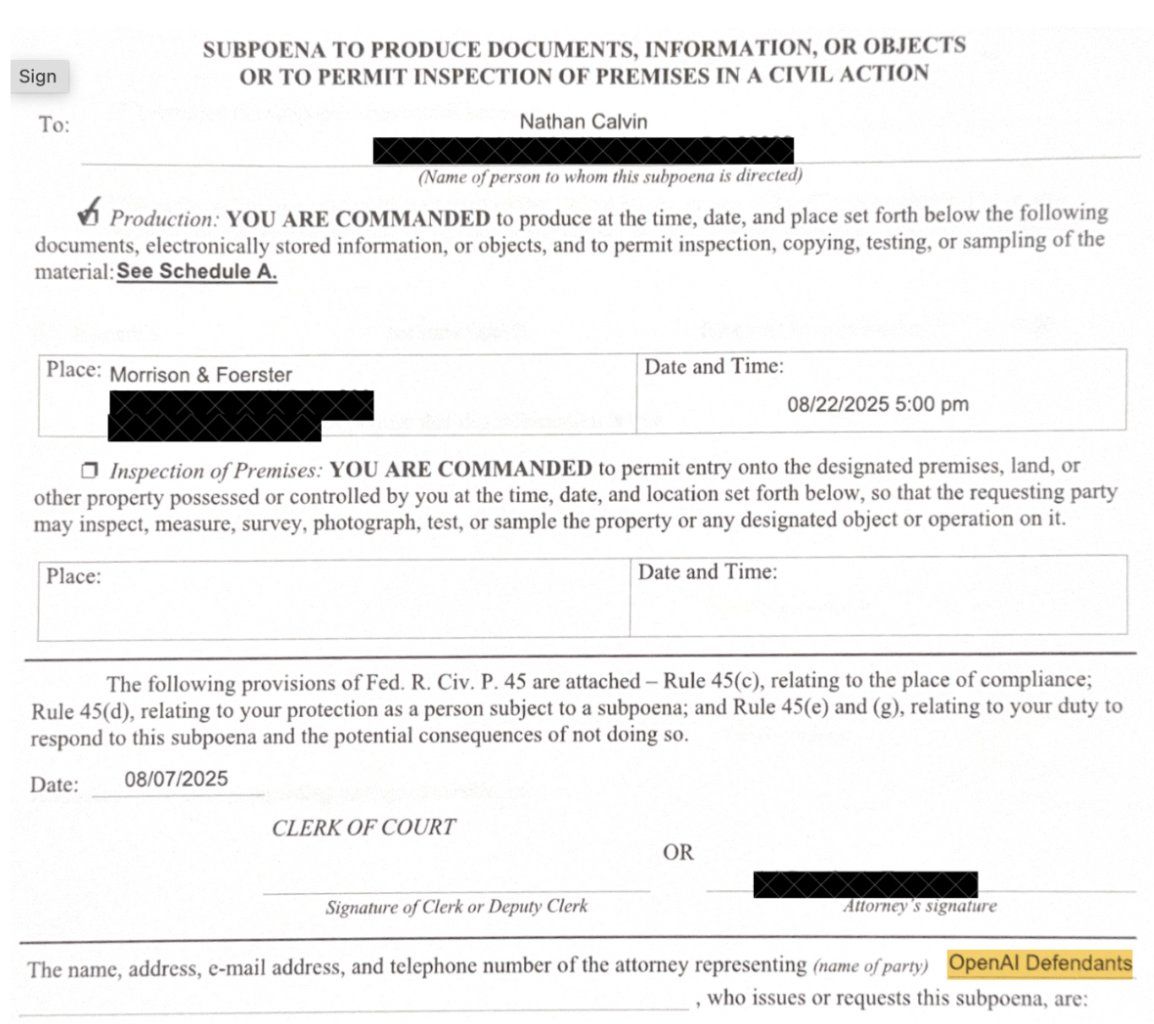 After California passed SB 53, OpenAI issued subpoenas to AI watchdogs Encode and The Midas Project, prompting public criticism.