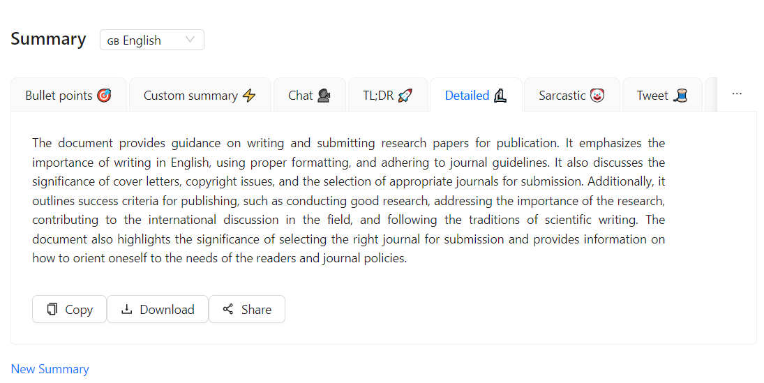 You’ll get bullet points, detailed summary and you can even chat with the PDF