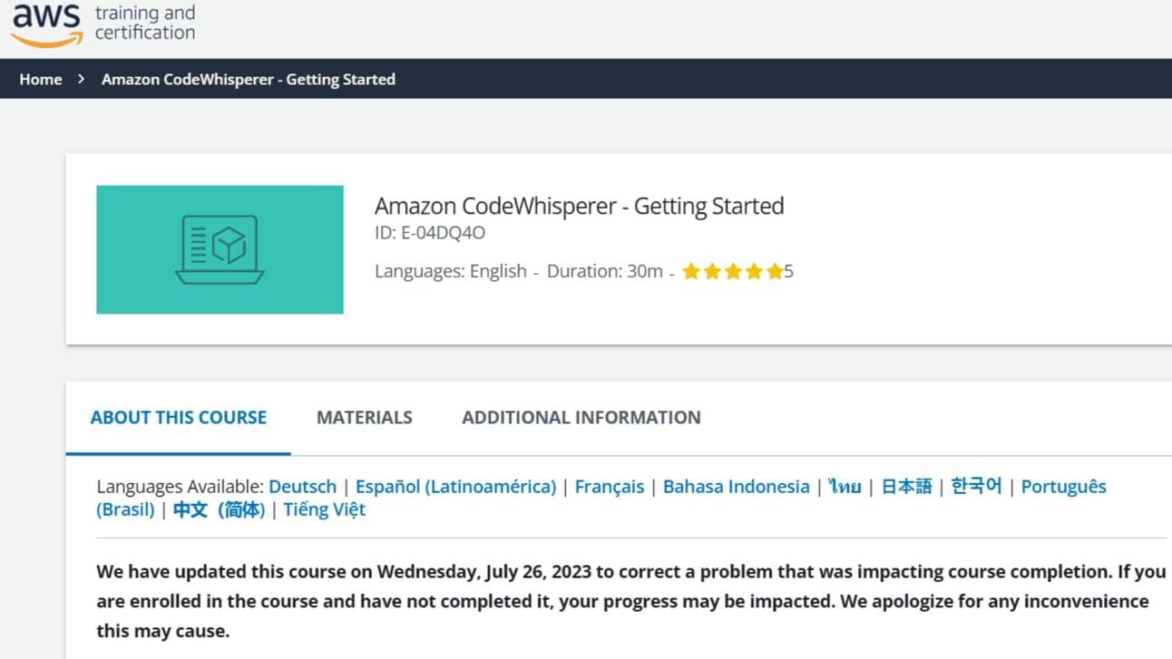 Amazon CodeWhisperer: Get familiar with an AI coding companion that accelerates your coding process.