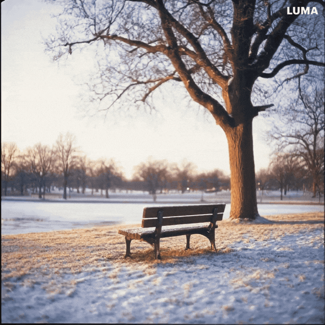 Ending Frame: The same park covered in winter snow.