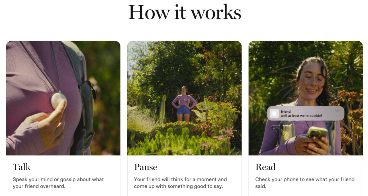 "Friend" is an AI-powered gadget worn as a pendant, responding to users via text.