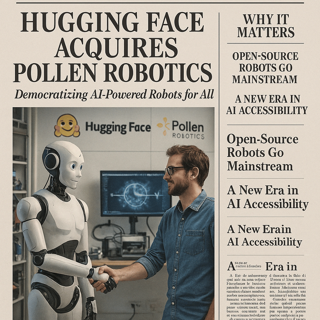 Hugging Face has acquired Pollen Robotics to advance open-source humanoid robots in AI. Their first product, Reachy 2, is a $70,000 VR-compatible robot used in top labs for education and research. This move aims to make robotics open, affordable, and hackable, enabling the community to create and control their own robots.