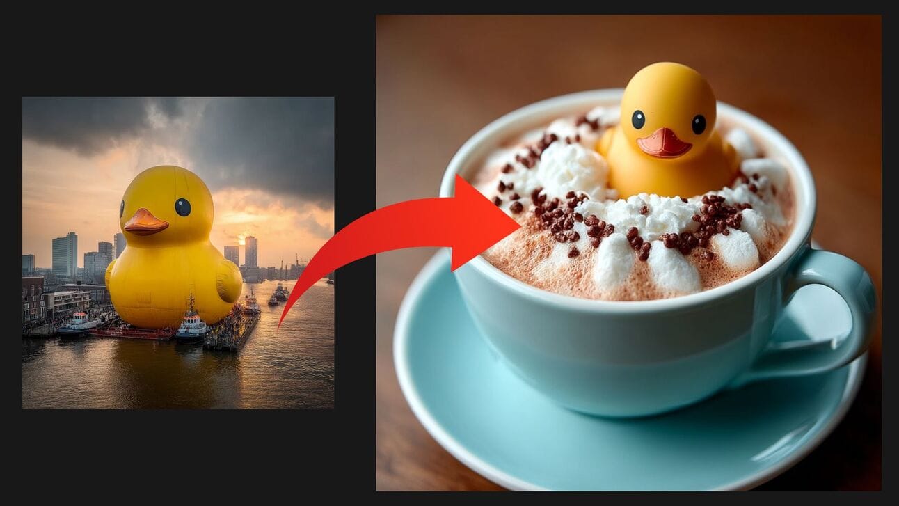 Pro tip: Generate a reference with /imagine a rubber duck —v 7, then use it for consistent scenes, like a duck in a teacup!
