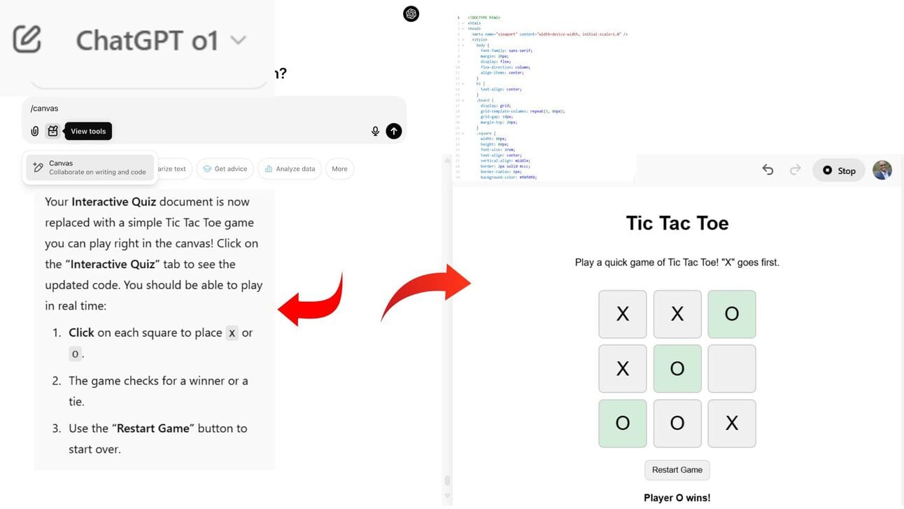 Follow these simple steps to build and play a Tic-Tac-Toe game in real time using the ChatGPT Canvas feature: