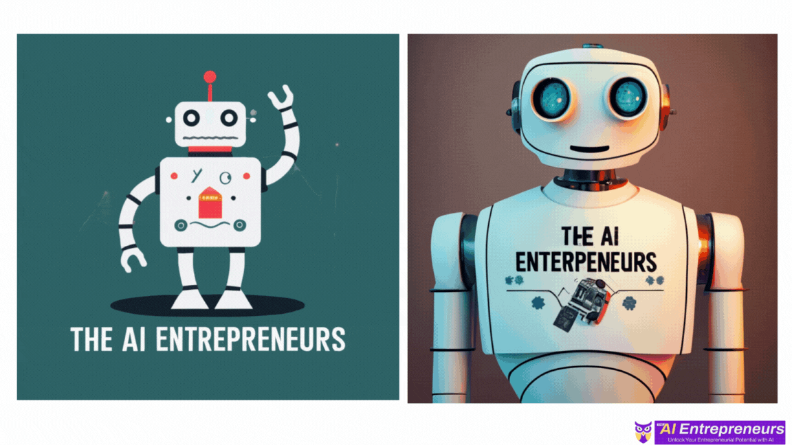 A robot wearing the t-shirt with the exact text "The AI Entrepreneurs."
